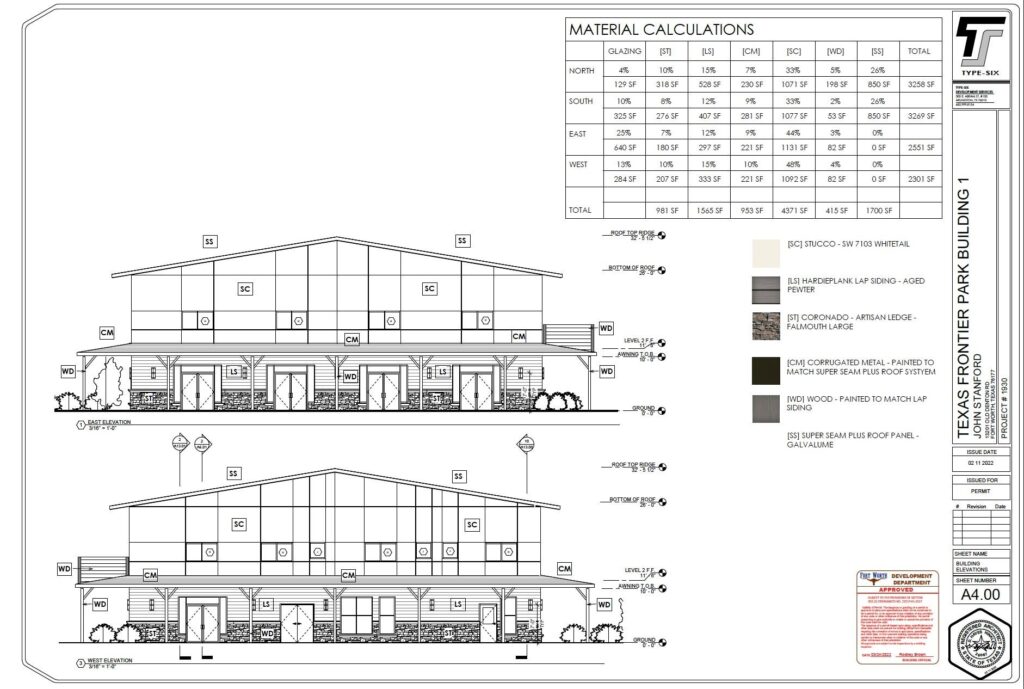 Street facing to Old Denton Road which is scheduled to be renamed North Riverside Drive, improved to 4 lanes with a center turn lane, 120′ ROW. There is a three story apartment complex across the street with more apartment development planned along the east side of Old Denton Road. A two story 15,000sf building has been permitted by the City of Fort Worth. The structural steel and standing seam roof of the building are on site and ready to erect. The two story building is 75’x100′ and has been designed with an elevator and space enough for a drive-thru along the north side. All utilities, domestic water, sanitary sewer, fire line, power secondary have been built and installed to the pad. AT&T network fiber is available. Texas Frontier Park is located within Foreign Trade Zone #196.