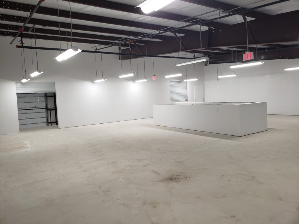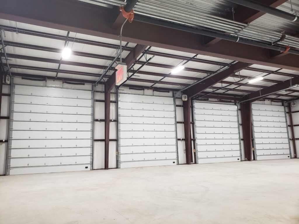 - Overhead warehouse doors are motorized with wireless controls