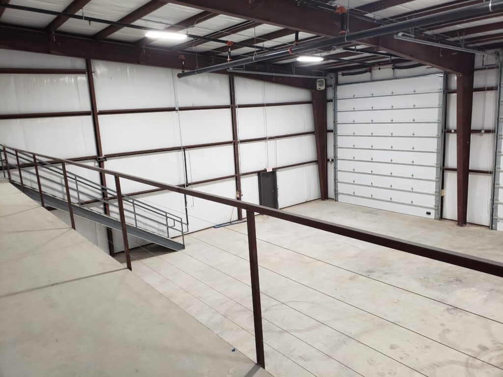 - The mezzanine floor is a 50% deck over the front (south) side of the building.