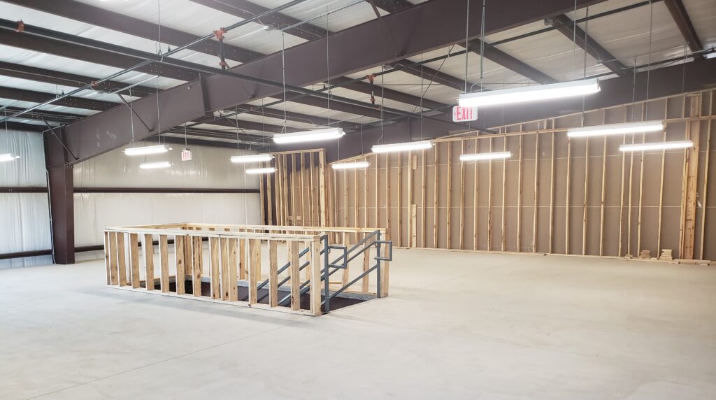- The north end of the building is the high 24' back, with full sized 18'W x 20'H overhead doors.